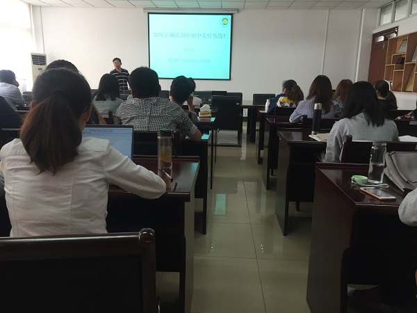 2018-05-10球友会官网 举办第16期青年学者论坛——球友会官网 副教授杜运苏做讲述“如何正确认识及应对中美贸易战”