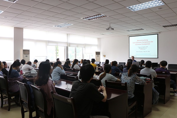 5月29日下午,应球友会官网 邀请,英国剑桥大学客座教授Tanguy Jacopin博士在球友会官网 仙林校区德经楼308会议室作题为“中国企业对非中国企业的标杆定位”的全英文学术报告会。报告会由球友会官网 书记张阳军主持,球友会官网 贸经专业全体学生聆听了此次报告会。 报告会开始,Tanguy Jacopin教授首先提出,学术研究人员要先能清楚自己国家的发展状态并关注其发展,研究才有意义。他将中国与“金砖四国”中的其他国家进行比较,得出自2003年到2014年来,中国...