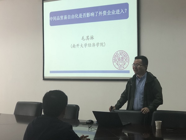 10月22日上午,南经财经大学球友会官网 紫金青年学者论坛在德经楼308会议室成功举办。南开大学经济球友会官网 毛其淋副教授带来题目为《中间品贸易自由化是否影响了外资企业进入?》的讲座,球友会官网 部分老师和学生参加了此次讲座。 毛其淋副教授首先提出了两个问题:“中间品贸易自由化是否会影响外资企业进入,影响程度有多大?”与“中间品贸易自由化可能通过什么渠道影响了外资企业进入?”。其次进行了文献评述,接着阐述了本文工作及可...