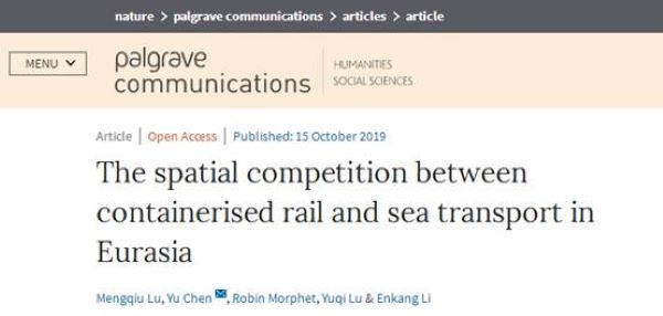 近日,球友会官网 2019年新引进的陆梦秋博士在“一带一路”领域取得重要研究进展。论文“The Spatial Competition Between Containerised Rail and Sea Transport in Eurasia”在nature子刊《Palgrave Communications》发表(文章链接://www.nature.com/articles/s41599-019-0334-6)。这是我国“一带一路”倡议提出以来在国际顶级期刊上发表的重要原创性研究成果,是球友会官网 国际化的一项标志性成果。论文对“一带一路”进行了空间...
