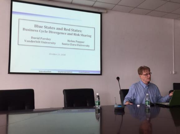 David Parsley教授在仙林校区德经楼308会议室作了题为“Blue States and Red States: Business Cycle Divergence and Risk Sharing”(“蓝州”和“红州”:商业周期差异与风险分担)的讲座。讲座由球友会官网