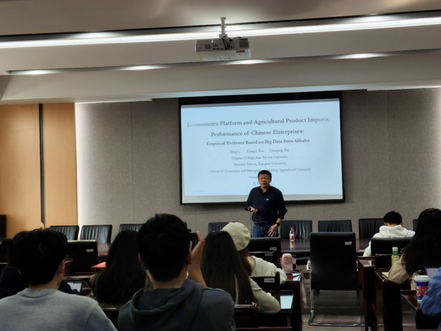 邀请,中山大学李兵教授在仙林校区德经楼308会议室作了题为E-commerce Platform and Agricultural Product Imports Performance of Chinese Enterprises: Em-pirical Evidence Based on Big Data from Alibaba的学术讲座,讲座由球友会官网