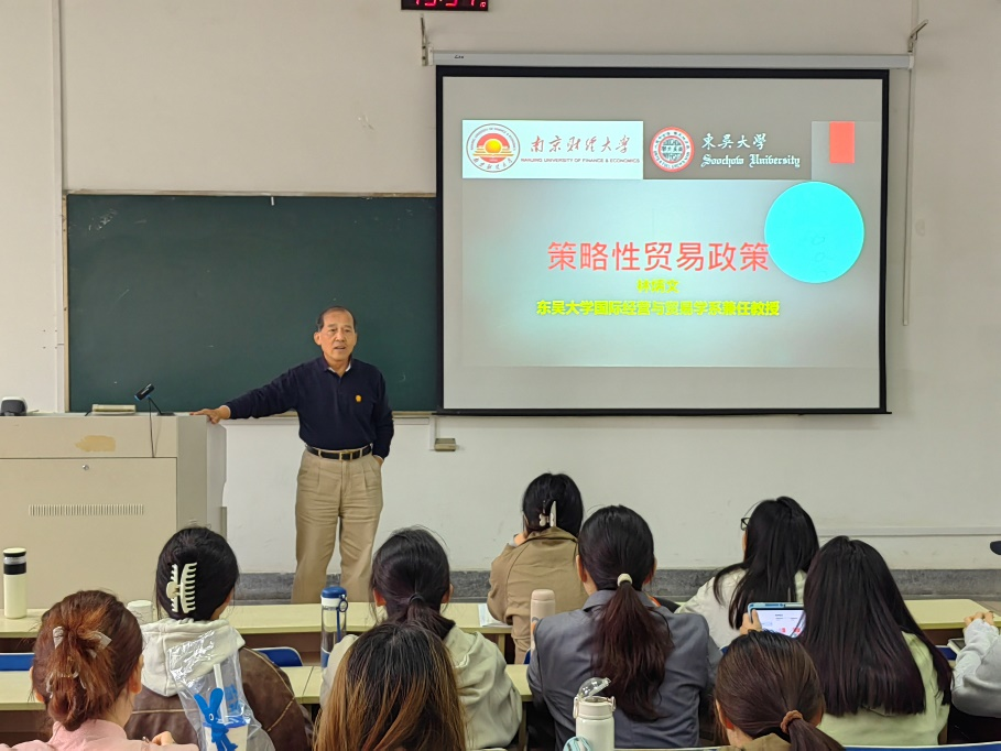 林炳文教授曾任东吴大学总务长、国际贸易学系主任、及东吴大学推广部主任,拥有数十年的教学和研究经验。林教授虽年迈,但精神矍铄,充满了学术激情。此次受邀来到南京财经大学,为国贸2202班的学生传授前沿的策略性贸易政策理论,展现了他对教育事业的热忱。