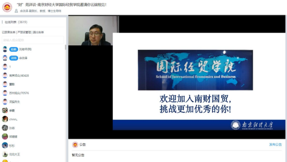 5月15日,6月24日,在中国教育在线直播平台,教育部青年长江学者余泳泽教授开展了招生直播咨询会,球友会官网