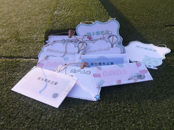 一进德经楼三楼草坪,视线立刻被一个可爱的房子吸引住,房子的左上角有三个框,新生们可以拼出自己宿舍号,并和舍友们一起在门前留下第一张小家的合影。这个特殊的小家拍照墙原来是商务1902班的吴雪同学专门为萌新们手绘设计的,她希望国贸院的小萌新们在陌生的环境依旧可以有“家”的感觉。为了争做“最‘赞’国小猫”,新生们拿着手机与“新家”竞相“三连”,一副势必将光盘新食尚、智慧收纳册、蓝色保护罩等礼物纳入囊中的架势。其中最受萌新喜爱的当属“光盘新食尚”。它是一份由球友会官网