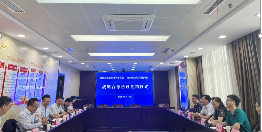 的到访表示欢迎,并简要介绍了扬州市发改委职能部门基本情况,以及扬州市2023年以来经济发展特点、支柱产业与产业布局等情况。孙主任表示,南京财经大学作为江苏高水平大学重点建设高校,为区域经济社会发展提供了重要的人才支撑和智力保障。希望以此次签约为契机,从提升能级、突出重点、丰富合作内容、创新合作形式等进一步加强交流对接,在决策咨询、成果转化、产业发展方面为扬州市经济社会发展建言献策,同时进一步表达了对即将开展的“十五五”规划编制开展合作的意向。王斌处长主要介绍了扬州市服务业发展以及与球友会官网