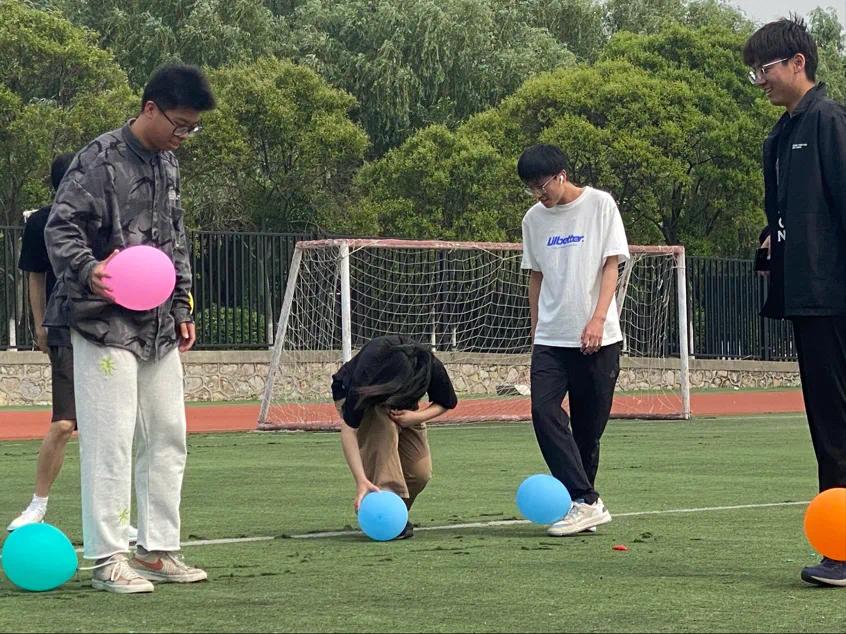 作为第一个项目“踩气球”,比赛伊始,各部门成员之间相互试探,以防守为主,但随着比赛地进行,伴随着此起彼伏的气球被踩爆的“砰砰声”,部员们由守转攻,竭尽全力,积极地投入到比赛之中,挥洒着青春的汗水。