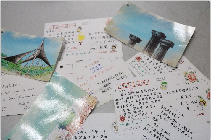 适应得挺快,我在南财真正走上成为一颗社会主义螺丝钉的道路。祝您一切都好。”一位叫龚逸之的同学在明信片上如此写道。“恩师的存在就像是拥有一位成熟的朋友。”姚嘉茜同学说,“我要特别感谢高中的地理老师,是她启发了我学习的兴趣,明信片虽小,但是情谊沉甸甸的。”查同学在明信片上熟稔地称呼高中班主任老师为“男神”,他写道:“男神男神!欢迎来南京玩!带你飞!大学老师都没有你颜值高!哈哈,教师节快乐!”