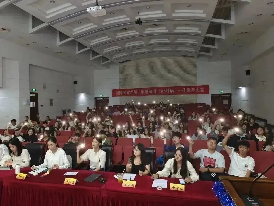 于德经楼二楼报告厅成功举办“乐潮澎湃,fun肆嗨”十佳歌手大赛。此次活动共有15位选手参加,并邀请了上届主持人大赛获奖者朱奕昊作为此次比赛的主持人。