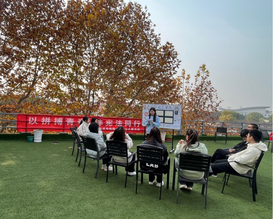 于11月29日在德经楼二楼草坪开展了“以拼搏青春,伴宪法同行”国家宪法日主题活动。本次活动分为四个环节,包括学习宪法精神、宪法小故事沙龙分享、宪法宣誓仪式和“宪法,前进!”——趣味普法宣传活动。