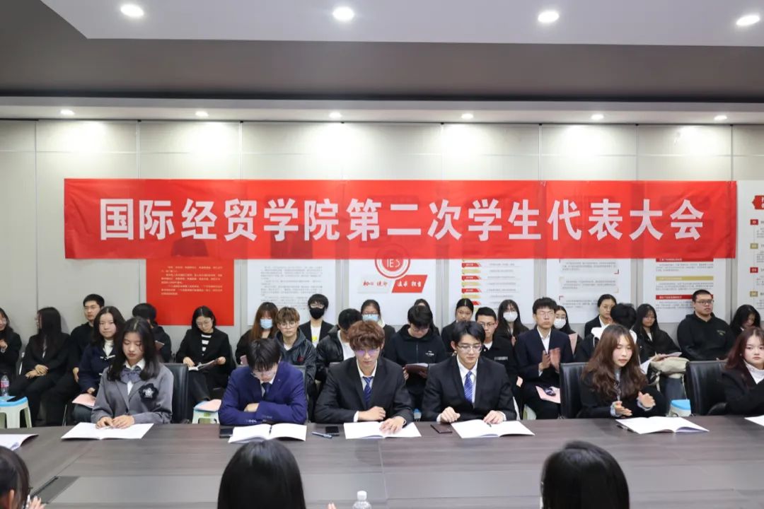 主席代表出席,国际经济与贸易、贸易经济、电子商务三个专业各年级共52名代表参加了此次会议,会议由学生会主席丁莹主持。