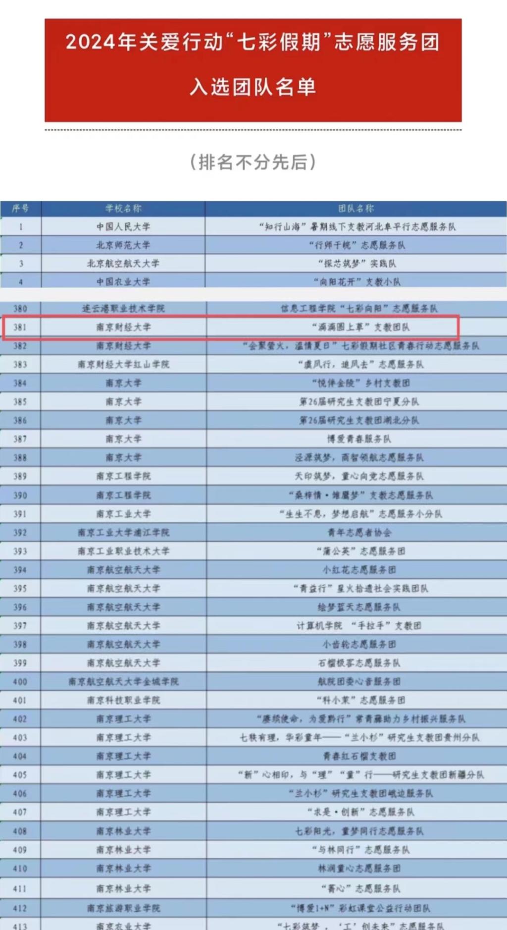 主办单位对所有材料进行了认真审阅,最终共有来自南京大学、华中科技大学等1142所高校的2000支大学生志愿服务团队入选。球友会官网