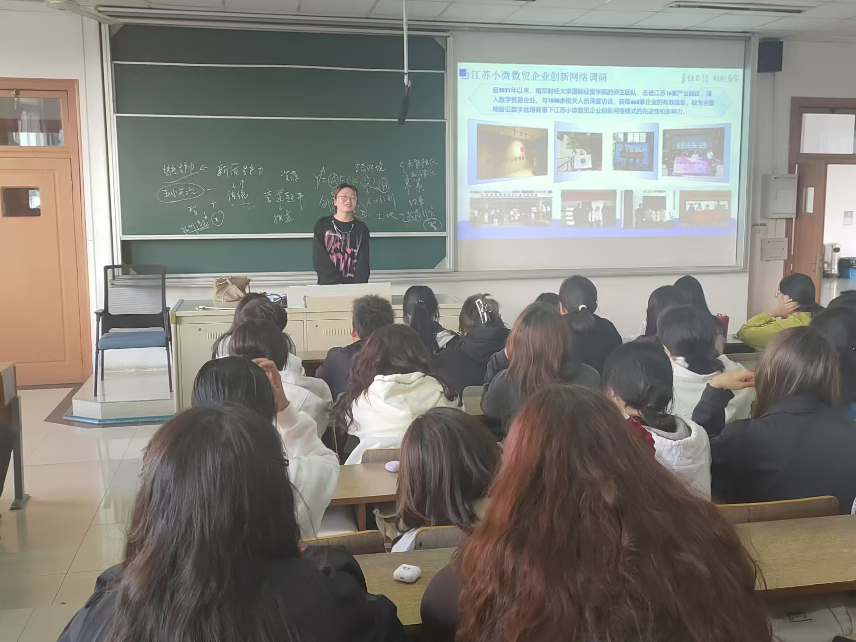 师生因地制宜,在经济学理论创新、数字贸易、跨境电商、新零售等领域的实践探索。她鼓励同学们聚焦国家发展需要,结合专业所学,以创新精神为引领,开展实践探索。