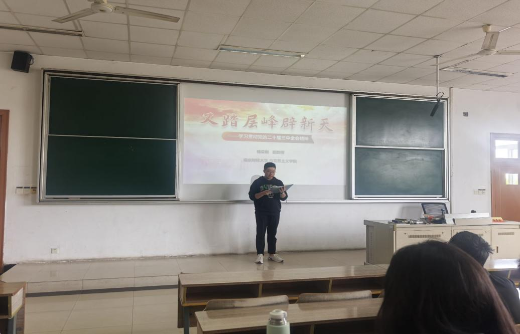 杨荣刚副教授授课,向同学们讲解党的二十届三中全会精神相关内容。