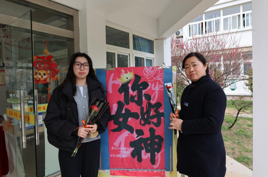 女教师们送上节日最真挚的祝福,感谢她们在过去的时间里坚守岗位,默默付出,用耐心和细心,为学生的发展提供了坚实的支持和帮助。老师们接过花束,满脸惊喜,随即与同学们亲切交流,询问学习和生活情况,叮嘱大家珍惜大学时光,专注学习,提升技能,全面发展。随后,同学们来到了宿管站,感谢阿姨们日夜守护着学生的安全与生活。阿姨们接过鲜花,与同学们分享起了以前的趣事,房间里一片欢声笑语。