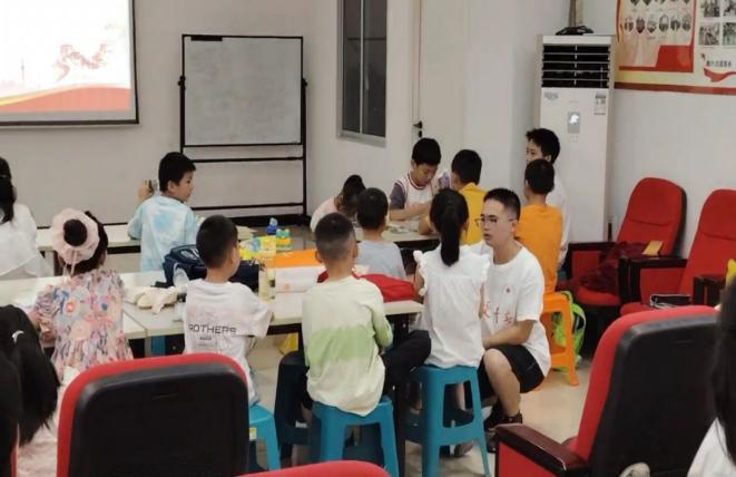 图为实践团成员与小朋友们一起制作“南湖红船” 唐顺岩供图