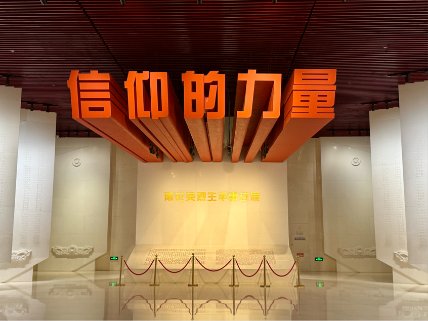 在拍摄完宣传片后,实践队员们前往雨花台烈士纪念馆参观,仔细了解雨花台的具体历史和实物资料。刚进入纪念馆,映入眼帘的便是“信仰的力量”五个大字,两边用白色方碑上面记录着牺牲的革命烈士的名字,队员们在此悼念后,进入场馆进行参观,踏入雨花台纪念