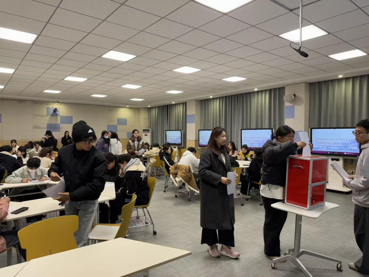 竞选发言结束后,工作人员有序发放选票,并详细讲解填写规范。同学们认真思考、审慎填写,在工作人员的引导下依次走向投票箱,投下自己宝贵的一票,充分行使民主权利。