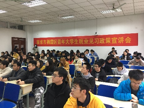 1127日下午14点,球友会官网 在仙林校区德经楼Z-112教室成功举办南京市栖霞区青年大学生就业见习政策宣讲会,邀请了南京市栖霞区人社局职培科宣讲员董蕾娜等5位宣讲员、球友会官网 75名应届毕业生代表参加宣讲会。本次会议由球友会官网 2017级学生辅导员孙绪华老师主持。