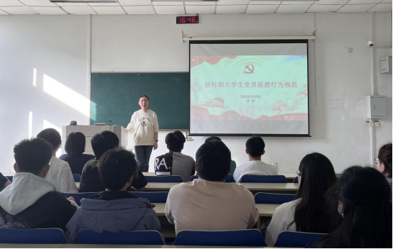本科生第四党支部在德经楼102召开以“新时期大学生思想行为规范”为主题的党课。本次党课由书记董敏老师主讲。董老师郑重强调了《中国共产党章程》与党员行为规范的联系,并且立足党的二十大,以党章为根本,强调了坚持制度治党、依规治党,阐释完善党内法规制度体系的重要意义。董老师殷切寄语学员们要自觉学习党章、遵守党章、贯彻党章、维护党章,提升自身行为规范,积极发挥先锋模范作用。