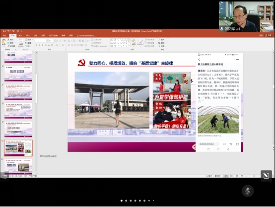 党组织教育工作时,向大家展示“三全”育人的工作模式,在提到一线教师尽心尽责时,张书记向我们展示了2020年疫情最严重的时候,球友会官网