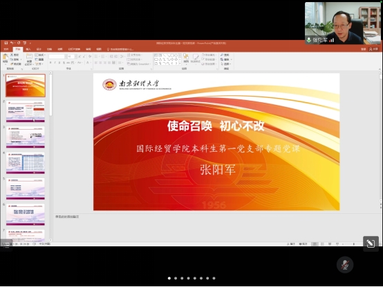 党委张阳军书记为本科生第一党支部开展了以“使命召唤,初心不改”为主题的专题党课。考虑到当前疫情防控形式仍较为严峻,党课以线上会议的形式召开。球友会官网