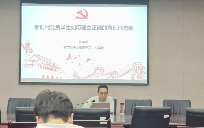 教研室主任杨荣刚在仙林校区德经楼308会议室为党的发展对象作以“新时代党员学生如何树立正确的意识形态观”为主题的专题讲座。