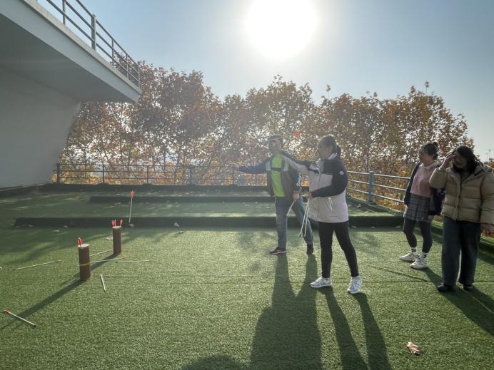 同心鼓比赛中,老师们默契配合,动作整齐划一,共同牵动同心鼓,成功颠起小球,在竞技中培养了团队意识。跳大绳中,参赛老师们随着长绳上下跳跃,节奏和谐有序,尽自己最大的努力跳稳、跳好、跳齐,尽情享受着每一次默契跃绳的成功喜悦。投壶比赛中,老师们集中注意力,不断摸索着投射力度和投射角度,充分锻炼了手、眼、脑协调能力,感受到了体育锻炼的乐趣和价值。