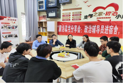 政治辅导员余泳泽、周进进深入学生寝室,在中苑6号站的石榴家园开展廉洁读书分享会,与同学共话廉洁之道。