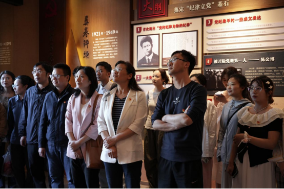 全体院领导、科级干部、党支部书记人、党外教师代表和师生党员代表参观栖霞区党的纪律建设教育馆,重温党的纪律历史建设历程,严明党的纪律规矩,实地开展纪律警示教育。