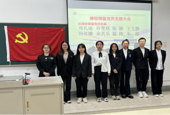 接收为预备党员的8名同学:郑孔迪、许雯欣、张颖、王文静、杨依娜、 余其乐、温涛、朱萌。