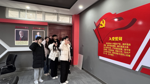 在认真听取汇报和意见后,与会党员进行了充分讨论。经无记名投票表决,大会同意接收邵云天、陈晨、沈旺、陈炫羽、许芸希、郑诗薇等六位同志为预备党员。大会尾声,党员代表潘薇薇引领预备党员进行入党宣誓。预备党员们面向党旗,誓言铿锵,郑重表达对党的忠诚以及为共产主义事业不懈拼搏的坚定信念。