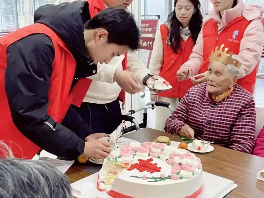 组织“银发生辉·共筑未来”党团社区志愿服务小队,前往姚坊门社区养老服务中心开展“温暖常相伴,共为银发安”学雷锋进社区志愿活动。志愿者联合社区准备了精美的糕点和水果等为年过80岁的14位老人集体祝寿。生日会后,志愿者陪着老人们畅谈聊天,聊国家大事也聊家长里短,生活近况。党员志愿者潘薇薇为不会用手机办理年审的老人们仔细讲解,手把手演示如何操作,切实帮助老人解决生活困难。临走时,老人们亲切地与志愿者们挥手告别,感谢同学们的到来与慰问,期待下一次相约。