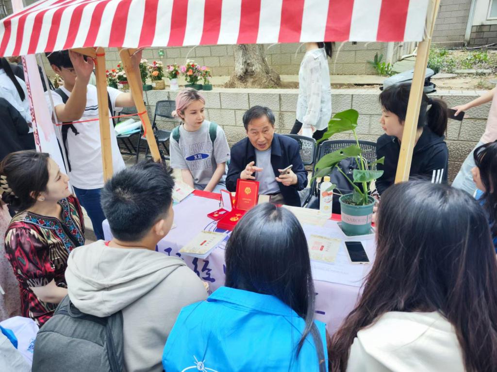 在南京财经大学仙林校区中苑社区举办的“首届社区文化节”活动中,刘树铭老师深入学生社区,与青年学子进行了深入的思想交流。在轻松舒适的社区环境中,刘树铭老师细致询问了学生们的学习与生活情况,并对同学们的发展和未来规划提出了建议。活动期间,刘树铭老师展示了许多珍贵的历史物件,如战争时期的好人好事报、《铭记实案录》回忆录、由击落的敌机残骸熔制的飞机模型等老物件,闪亮如新的军功章……刘树铭老师一一做着展示介绍,同学们纷纷被吸引前来,直观感受老一辈的坚韧不屈、初心不改,实现红色精神对大学生的浸润和传承。以老带新畅谈人生跌宕感悟,让大学生获得指引与启发,更好地成长成才。