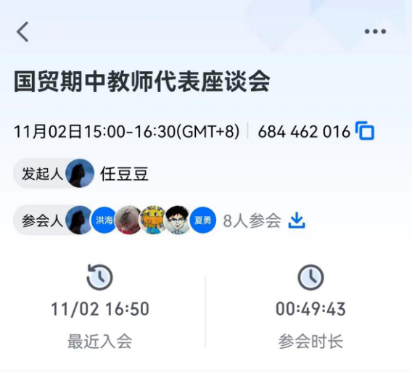 于11月2日15时召开了线上期中教师座谈会,国际经济与贸易、贸易经济和电子商务专业教师代表参会,会议由教球友会官网