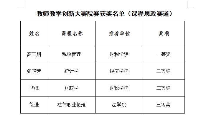 根据《关于举办南京财经大学教师教学创新大赛院赛的通知》要求,球友会官网 于2025年10月22日举办了南京财经大学教师教学创新大赛院赛(课程思政赛道)。经教学创新成果报告评审、现场评审环节,评选出一等奖1人,二等奖1人,三等奖2人,现予以公示。如有异议,请在公示期内反映。