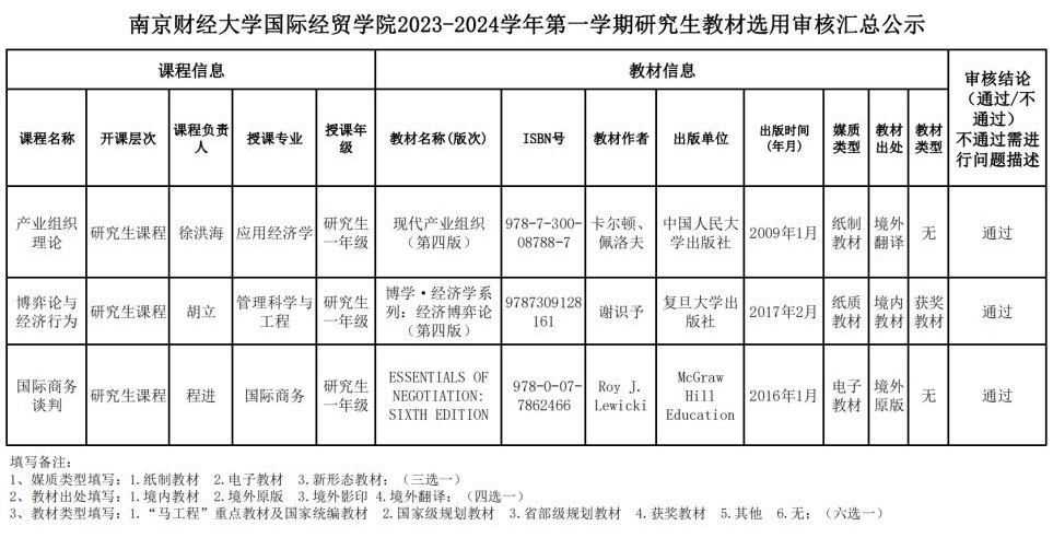 2023-2024学年第一学期所有选用的研究生教材进行政治性和学术性审核,审核结果公示如下。公示期对结果如有异议,请与球友会官网