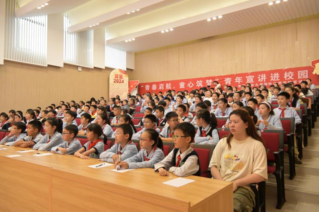 此次活动采取公开演讲与接力互动相结合的形式。报告厅内,宣讲团以朱德军长和双枪女将伍若兰的故事引入,带领近200名四年级学生走进井冈山,传播革命精神。“同志哥,扁担闪闪亮,朱军长带头挑粮上井冈。”“井冈山上开着一朵永不凋零的兰花,‘它’永远地绽放在我们的心里。”宣讲团声情并茂地演讲,台下同学们专注聆听,脸上露出了敬佩、感动的神情,革命的精神火种在心中悄悄生根发芽。