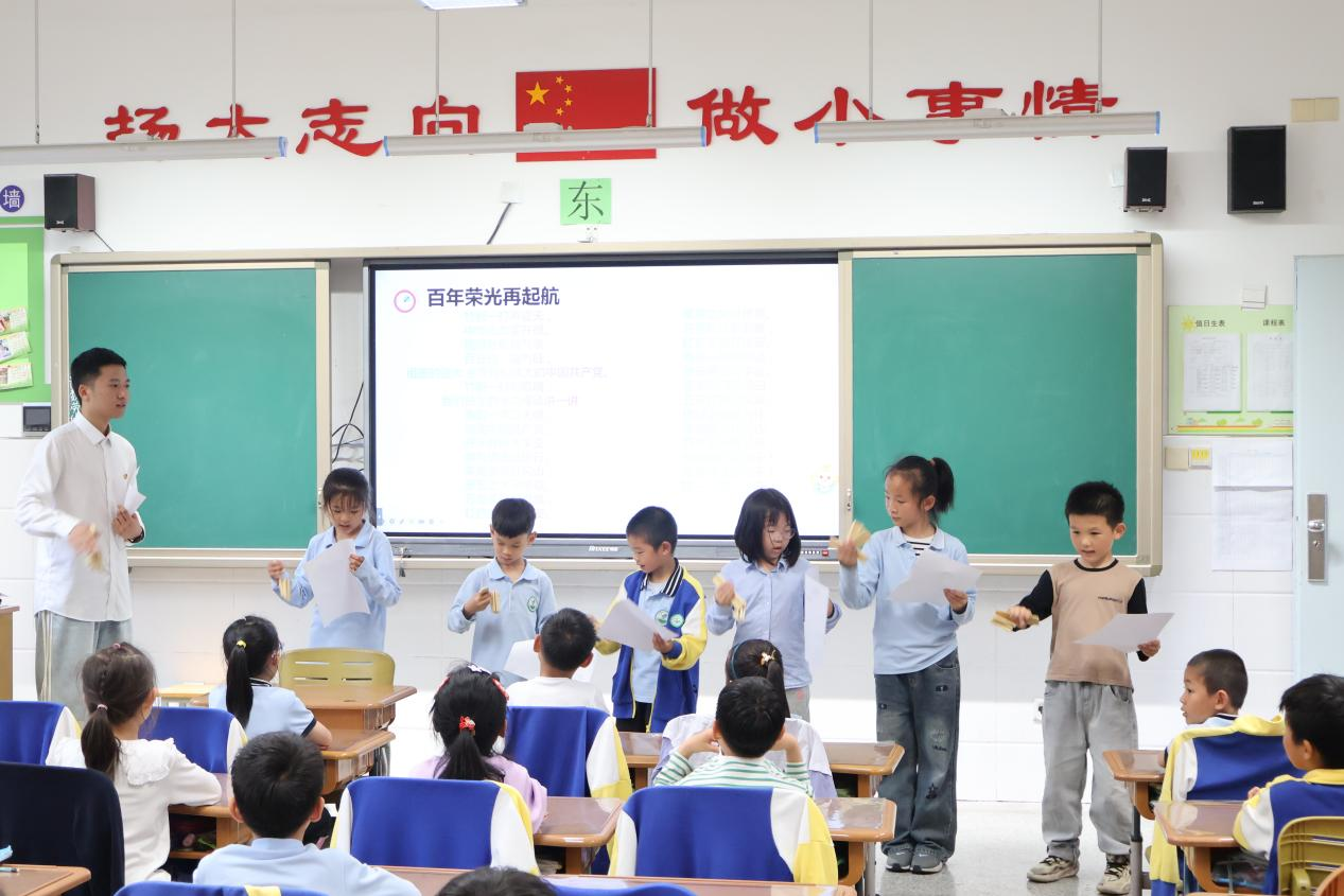 校园的另一侧,宣讲团与一年级六班的同学们集体演出红色故事快板节目。“朱毛会师井冈山,星星之火可燎原。”“两弹一星创奇迹,蘑云腾空震宇寰”。快板形式新颖、节奏明快,内容朗朗上口。经过反复的朗诵排练,一年级小朋友们与宣讲团齐上阵,将缅怀先烈,珍惜当下,奋斗创未来的快板内容熟记于心,一气呵成完成节目。此外,宣讲团与同学们围坐开展“星火燎原之剪纸”活动,在锻炼动手能力的同时,传递星星之火可以燎原的革命乐观主义精神,鼓励同学们不畏困难,奋勇向前。南邮小学副校长曹金花表示,希望有更多的大学生走进小球友会官网 园开展红色精神宣讲活动,在厚植爱国主义精神的同时,发挥榜样示范作用,为小学生树立看齐的标杆。”